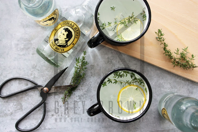 Frisch, fruchtig und abwechslungsreich - Gin Tonic Thyme Twist! Ein paar Blätter des Thymians mit einem Stößel im Glas zermahlen, Eiswürfel ins Glas geben, mit Gin und Tonic aufgießen und ein Stück Zitrone und einen Zweig Thymian hinzu geben.