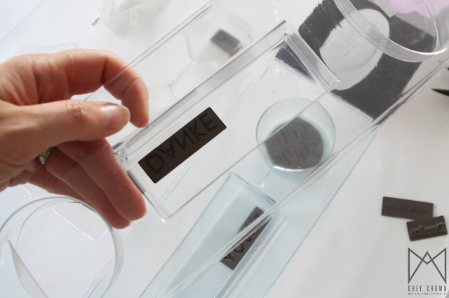1. Platziere deine Label in den Gießformen und fixiere sie mit dem doppelseitigem Klebeband.2. Klebe einen Streifen Tape über die Gießform, steche mit der Schere ein Loch hinein und platziere dort ein kurzes Stück Strohhalm. Den Strohhalm zusätzlich mit einem Stück Tape fixieren.